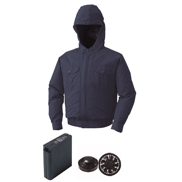 空調服 フード付屋外作業用空調服 大容量バッテリーセット ファンカラー:ブラック 0800B22C14S3 【カラー:ダークブルー サイズ:L 】